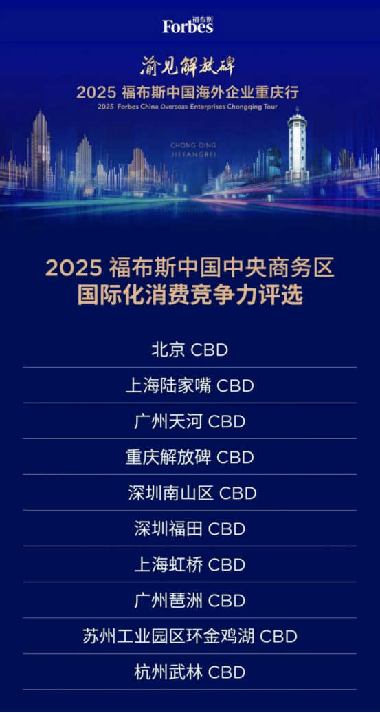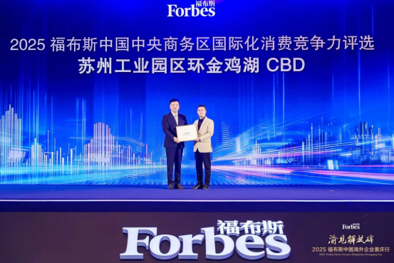 近日渝見解放碑·2025福布斯中國海外企業重慶行成功舉行活動期間,2025福布斯中國中央商務區國際化消費競爭力評選結果正式發布蘇州工業園區環金雞湖CBD榜上有名