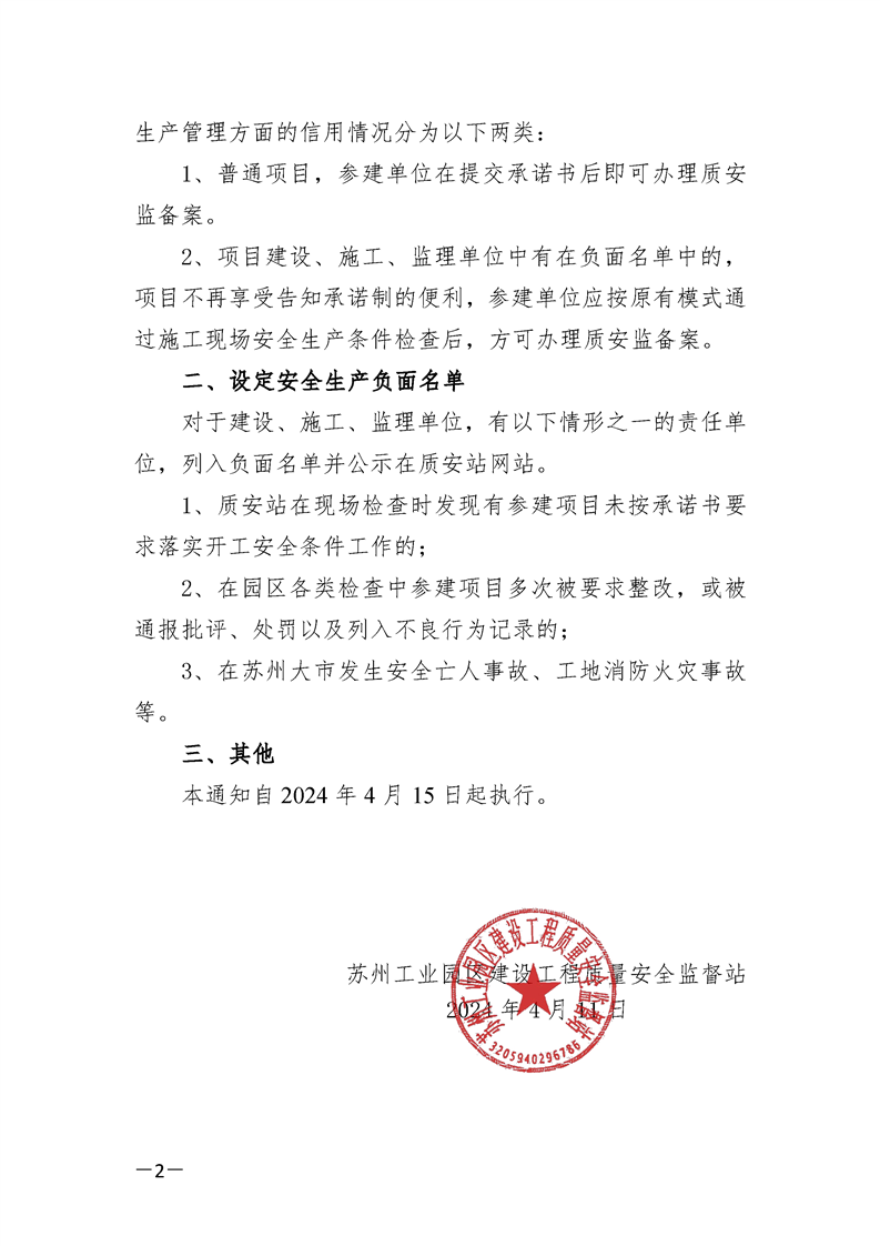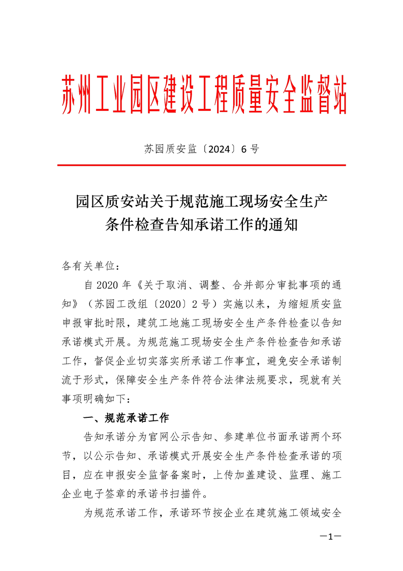 園區質安站關于規范施工現場安全生產條件檢查告知承諾工作的通知