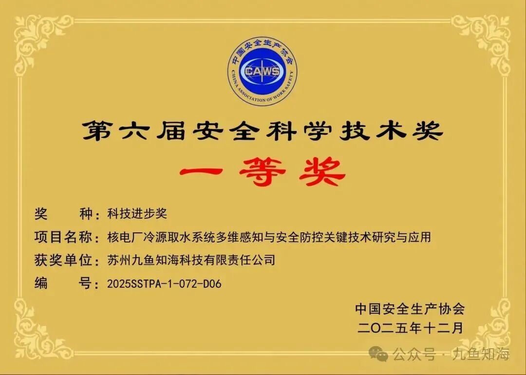 近日,蘇州工業(yè)園區(qū)科技招商中心引進企業(yè)——蘇州九魚知海科技有限責(zé)任公司(以下簡稱“九魚知海”)榮獲第六屆安全科學(xué)技術(shù)獎科技進步獎一等獎。