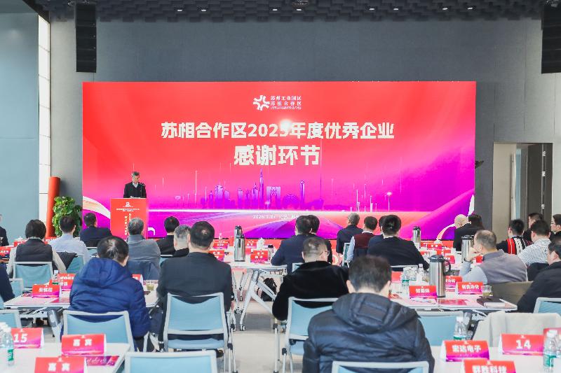 企業(yè)是推動(dòng)蘇相合作區(qū)高質(zhì)量發(fā)展的主力軍、中堅(jiān)力量,更是合作區(qū)建設(shè)高端制造集聚區(qū)的核心動(dòng)能。此次大會(huì)上,合作區(qū)對(duì)2025年度在經(jīng)濟(jì)發(fā)展、同心共建、合作共贏、社會(huì)責(zé)任等領(lǐng)域表現(xiàn)突出、成效顯著的優(yōu)秀企業(yè)進(jìn)行集中致謝,福耀玻璃、美的清潔電器、易德龍、卡士酸奶等一批優(yōu)秀企業(yè)代表上臺(tái)接受感謝狀。這份認(rèn)可,是對(duì)企業(yè)實(shí)干篤行、勇于擔(dān)當(dāng)?shù)目隙ㄅc褒獎(jiǎng),也是政企同心、攜手并肩、共創(chuàng)未來(lái)的堅(jiān)定承諾。