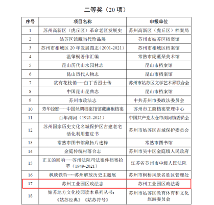 l 園區(qū)兩部志書獲評(píng)江蘇省史志作品優(yōu)秀成果