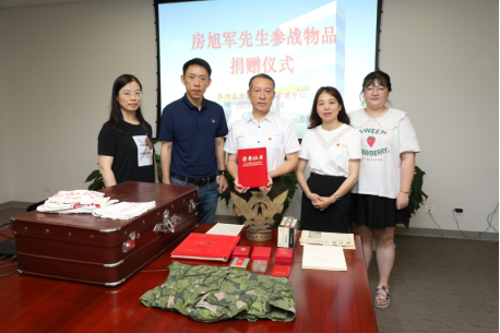 727日下午,園區檔案管理中心舉辦房旭軍先生參戰物品捐贈儀式。園區檔案管理中心綜合處工作人員、園區楓情水岸社區黨支部領導參加儀式。
