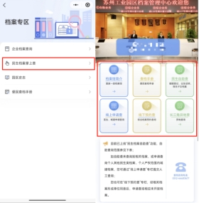在微信搜索欄輸入“蘇州工業(yè)園區(qū)一網(wǎng)通辦”小程序,進(jìn)入小程序點(diǎn)擊下方“專(zhuān)區(qū)”,在“檔案專(zhuān)區(qū)”找到“民生檔案掌上查”,點(diǎn)擊認(rèn)證登錄即可查詢(xún)。也可以?huà)呙瓒S碼,直接進(jìn)入“掌上查”小程序。