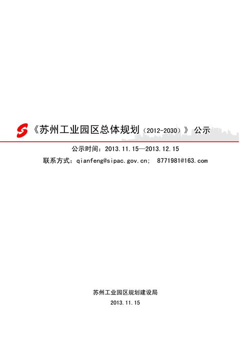 《蘇州工業園區總體規劃(2012-2030)》公示
