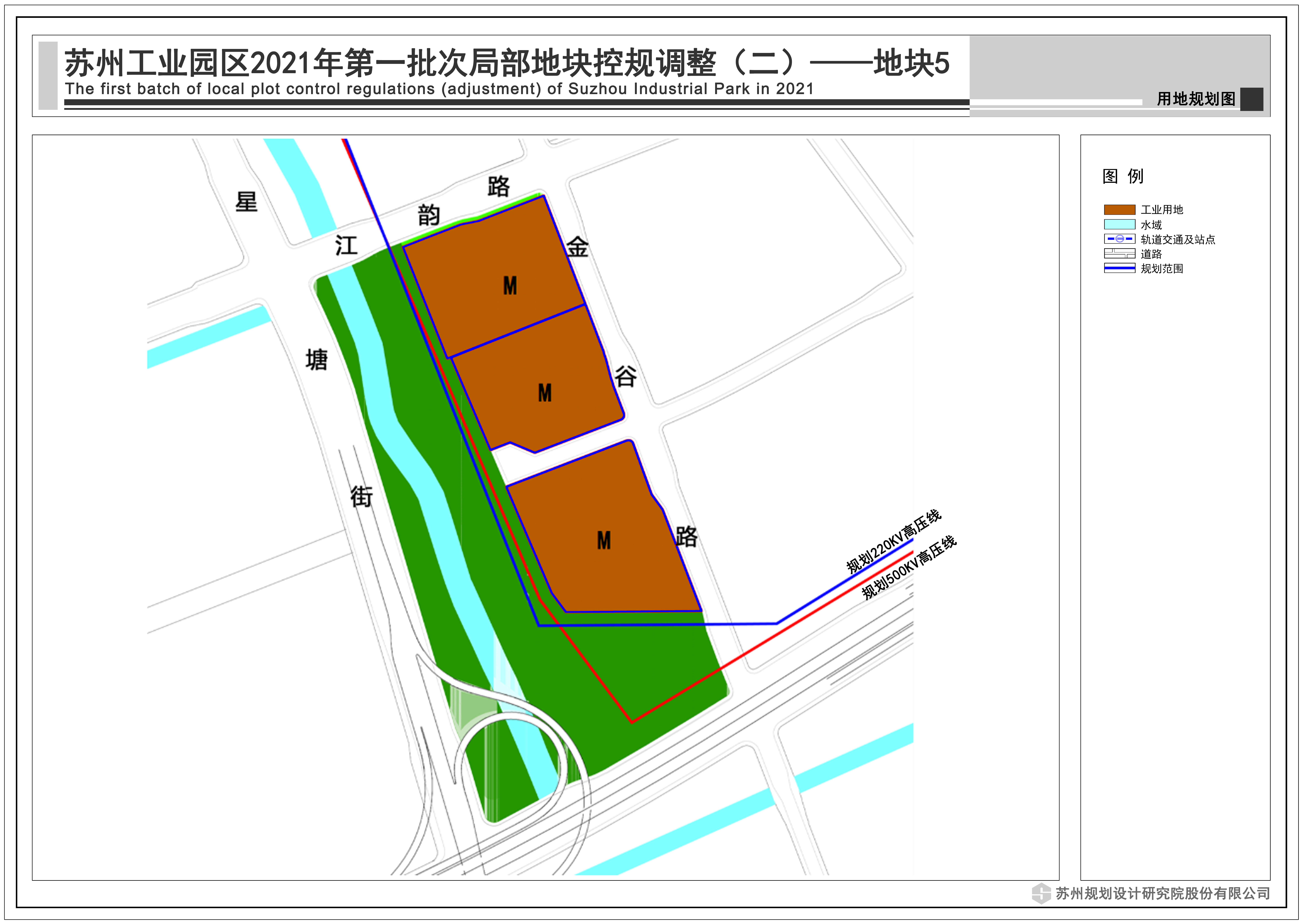 為滿足上市企業(yè)產(chǎn)業(yè)園北區(qū)西側(cè)新增500KV高壓線安全規(guī)范要求,需將原規(guī)劃物流倉儲用地調(diào)整為工業(yè)用地,同時根據(jù)500KV高壓線中心線的15米退線要求,調(diào)整工業(yè)地塊紅線。