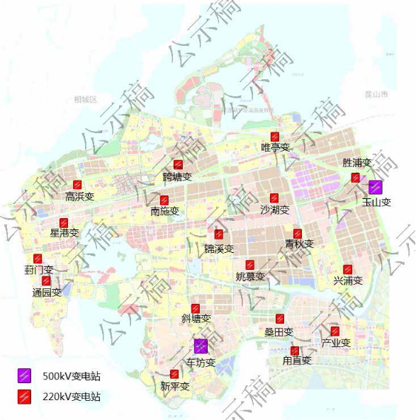 遠(yuǎn)期園區(qū)共形成16座220千伏變電站分區(qū)供電。保留現(xiàn)狀220千伏變電站5座,主變?nèi)萘?240兆伏安;擴(kuò)建現(xiàn)狀220千伏變電站3座,主變?nèi)萘窟_(dá)到2160兆伏安(其中擴(kuò)容720兆伏安)。考慮到負(fù)荷增長的需求,規(guī)劃新建8座220千伏變電站,分別為220千伏高浜變、通園變、唯亭變、勝浦變、興浦變、桑田變、新平變、錦溪變,共新增主變?nèi)萘?760兆伏安。