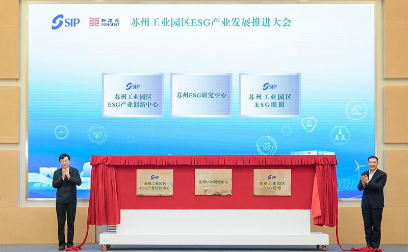 中國?シンガポールグリーン持続可能な発展研究センター、蘇州ESG研究センター、蘇州工業園區ESG連盟、蘇州工業園區ESG産業イノベーションセンターが正式にプレートを除幕した。園區は「三つのセンター、一つの連盟」の設立をきっかけに、中國とシンガポールのグリーン低炭素についての協力、ESG理論的研究、ESG標準制定、ESG重大プロジェクト誘致などを深く実施し、園區ESGの発展にもっと強い産業集中キャリヤーを創り出し、もっと最適な協力交流プラットフォームを構築する。