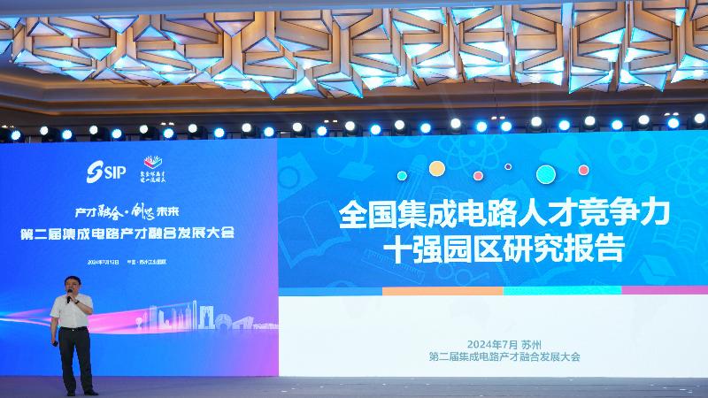 會議では、『全國集積回路人材競爭力トップ10園區報告書』が発表され、解読を行った。同報告書は人材備蓄、育成、吸引力、貢獻度などの面から國家級経済技術開発區を分析した。蘇州工業園區は競爭力ランキングで上海の張江、深センのハイテク産業園區、北京の中関村に次ぐ第四位に立っている。