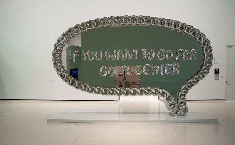 展示ホールの2階には、幅約6メートル、長さ約4メートルの巨大なインスタレーション作品『IF YOU WANT TO GO FAR, GO TOGETHER』が大注目を集めた。同展覧會のハイライトとして、この作品はアーティストの徐震氏によって心を込めて制作された。このインスタレーションは、アートの言語を用いて中國とシンガポールの協(xié)力の成果を生き生きと解釈すると同時に、「未來に向けて、中國とシンガポールは引き続き手を攜え、肩を並べていく」という展覧會のビジョンも明確に示している。