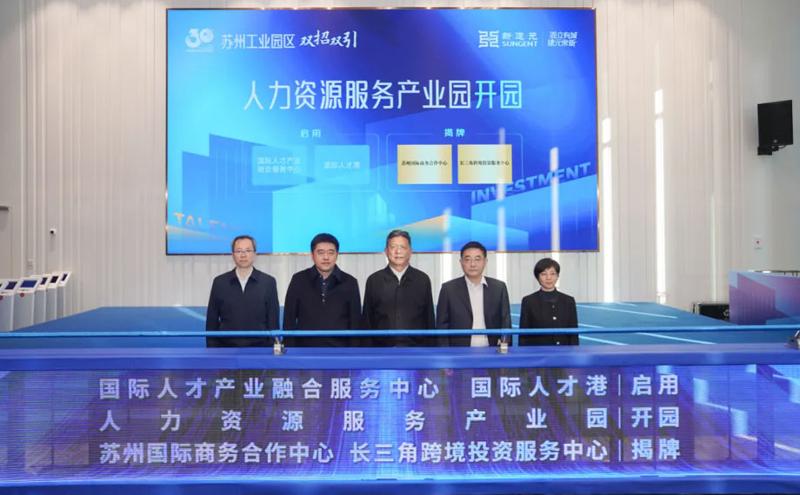 12月20日、蘇州工業園區人的資源サービス産業園はグレードアップ?開園し、國際人材産業融合サービスセンター、國際人材港はキックオフし、蘇州國際商務協力センター、長江デルタ越境投資サービスセンターは除幕した。