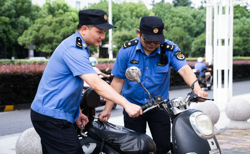 清脆的哨笛聲,利落的指揮手勢,車流如織的十字路口,他們在炙烤中指揮交通、引導(dǎo)車輛,他們是堅守崗位的“熒光黃”;勸離流動攤販、規(guī)范非機(jī)動車停放,他們的制服總是被汗水浸濕,卻依然步履不停監(jiān)督執(zhí)法,他們把“城管藍(lán)”變?yōu)榭崾罾镒蠲赖那鍥錾痪用裼惺拢麄冸S叫隨到,與高溫?zé)o關(guān),與責(zé)任有關(guān),舍小家為大家,他們永遠(yuǎn)是居民心里的“志愿紅”……