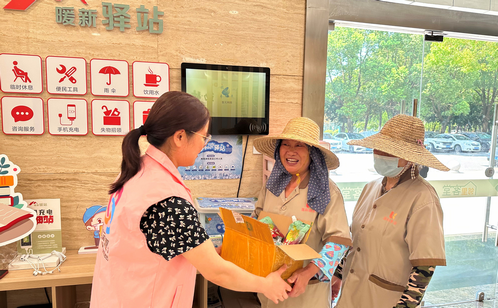 錦塘社區婦聯協同蘇州大學青年志愿者協會志愿者早早地準備好清涼物資,包括防暑降溫藥品、遮陽帽以及清涼油等實用物品,每一樣都承載著社區對環衛工人的深情厚意。在婦聯負責人的精心安排下,志愿者分成多個小組,深入小區,將這份清涼與關愛親手送到每一位環衛工人手中,并叮囑他們要注意防暑降溫,保重身體。環衛工人接過物資,臉上洋溢著感激的笑容,紛紛表示:“感謝社區的關心,我們會繼續努力工作,讓社區更加美麗。”當天,志愿者還為轄區新業態新就業群體送去一份清涼、一份關愛。