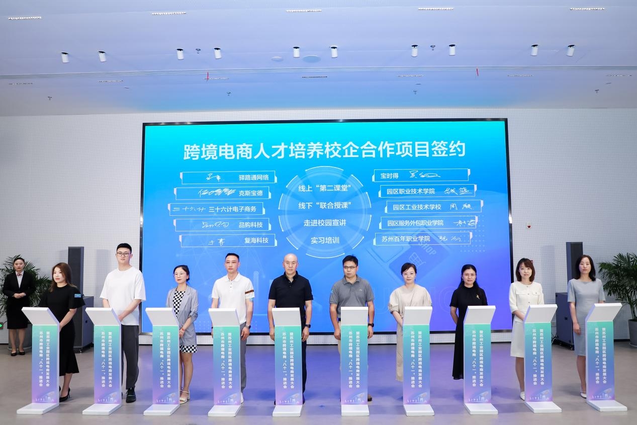 現場,蘇州亞馬遜云科技品牌出海數字化賦能中心、蘇州頤高跨境電商產業園、三人行保稅進口展示中心三家園區跨境電商重點平臺項目正式啟用;6家企業與4所高校簽署了跨境電商人才培養校企合作項目;多個園區跨境電商產業招商項目簽約。