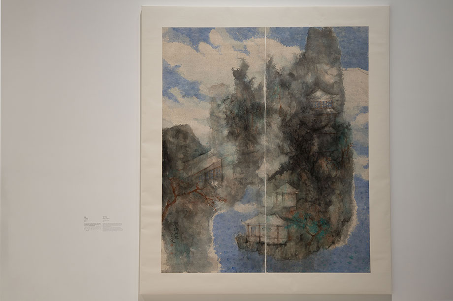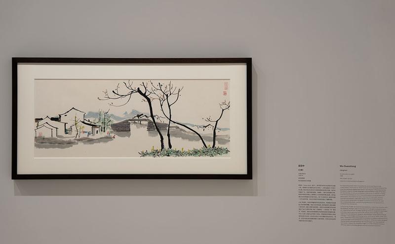 在“家園載情”部分,中新兩國的先驅和新興藝術家們以不同方式喚醒對家園的思念和依戀,從“江南水鄉”到“當代都市”書寫現實版的“家園重逢”。該篇章包括中國著名書法家顧廷龍的書法小篆作品《錦繡河山》、藝術家吳冠中的四件水墨和油畫作品,以及新加坡當代藝術發展先驅唐大霧創作的大地藝術代表作品、新加坡女性藝術家王良吟創作的《新女郎的故地重游》系列攝影作品等。