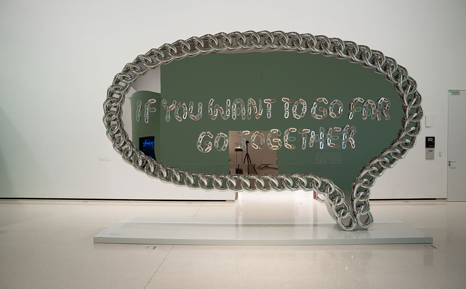 在“都市未來”部分,藝術家們暢想都市的未來樣貌,寄托對遠景的期待。該篇章包括中國當代藝術領域的標志性人物徐震為本次展覽創作的巨型裝置《結伴才能行遠》、中國新銳藝術家裴詠梅基于蘇州工業園區創作的《都市未來系列》最新力作,以及新加坡藝術家林育榮的影像裝置作品《海況9:公告》系列作品、新加坡著名攝影師郭景創作的《新加坡偶像》系列攝影作品等。