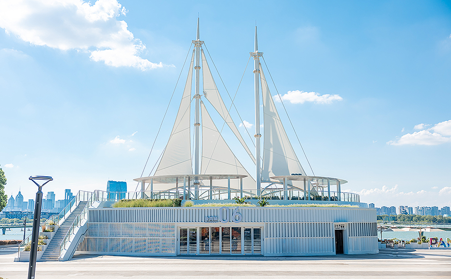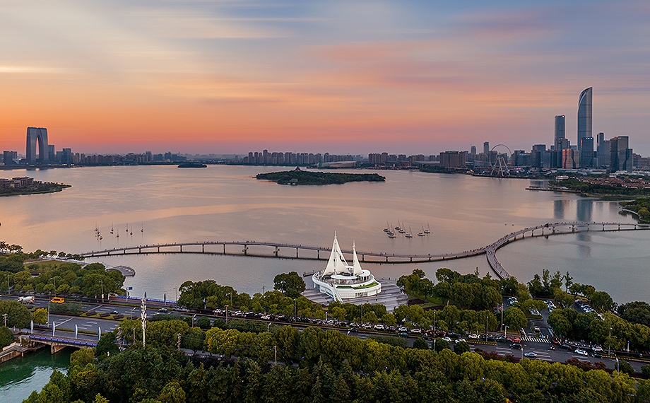 在開(kāi)發(fā)建設(shè)30周年之際,園區(qū)積極以新載體撬動(dòng)經(jīng)濟(jì)“新引擎”。金雞湖驛站改造是環(huán)金雞湖區(qū)域綜合提升工程中的重要舉措。其中,金雞驛06館位于望湖角帆船碼頭,緊鄰金水灣棧橋,定位為集水上運(yùn)動(dòng)、餐飲和公共服務(wù)為一體的綜合服務(wù)設(shè)施。驛站頂部設(shè)有巨型帆船雕塑,與湖邊停泊的點(diǎn)點(diǎn)帆船,構(gòu)成了時(shí)尚美麗的城市風(fēng)景線。