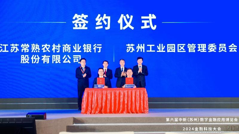開幕式現場,蘇州工業(yè)園區(qū)管理委員會分別與中國金融電子化集團有限公司、安永(中國)企業(yè)咨詢有限公司、東吳人壽保險股份有限公司、江蘇常熟農村商業(yè)銀行股份有限公司進行戰(zhàn)略合作簽約,常熟農商銀行科創(chuàng)金融中心正式揭牌,多方資源匯聚,多條線合作持續(xù)加強。