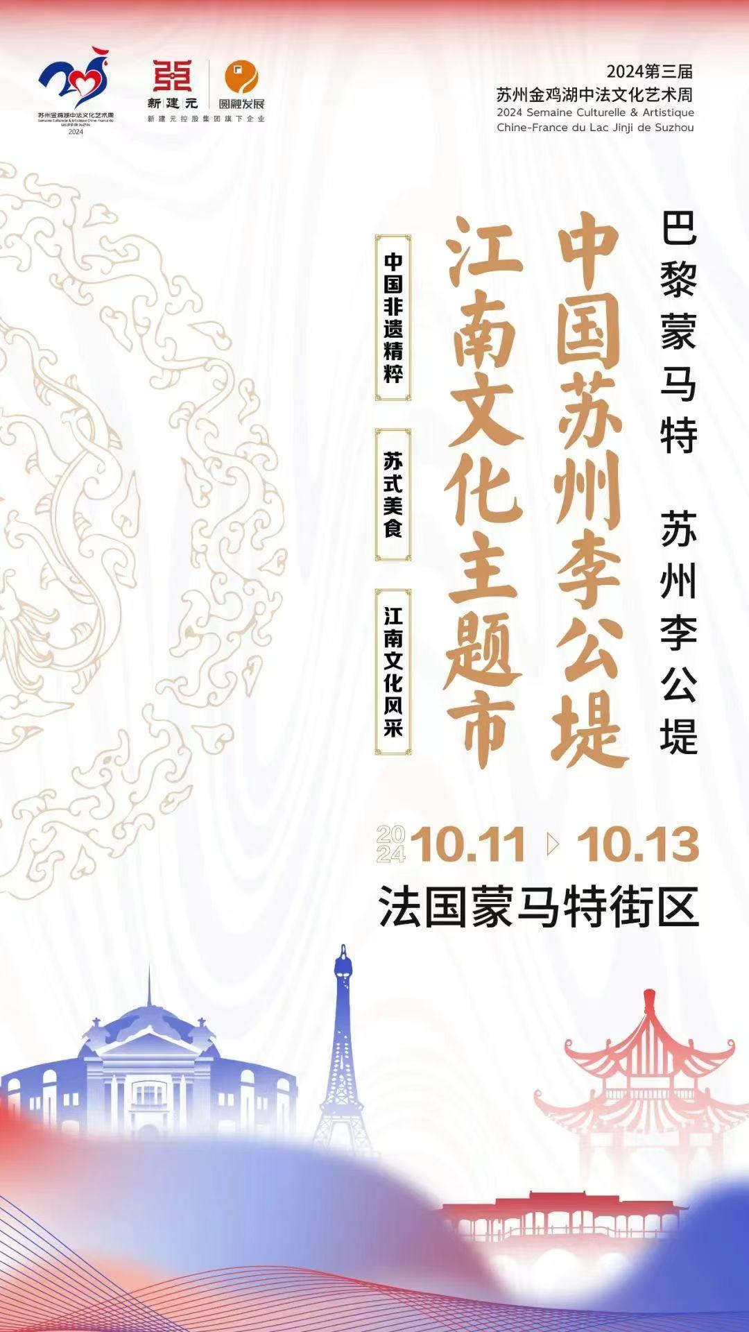 2024第三屆蘇州金雞湖中法文化藝術(shù)周于10月5日至20日舉行,市集、巡游、展覽、音樂、芭蕾、電影、文學(xué)等一系列活動將陸續(xù)在中國蘇州和法國巴黎同步開展,主要呈現(xiàn)法國巴黎四場系列活動和中國蘇州九大主題活動,讓蘇州市民不出國門就能體會地道的法國文化,感受來自法蘭西濃厚的藝術(shù)氣息。