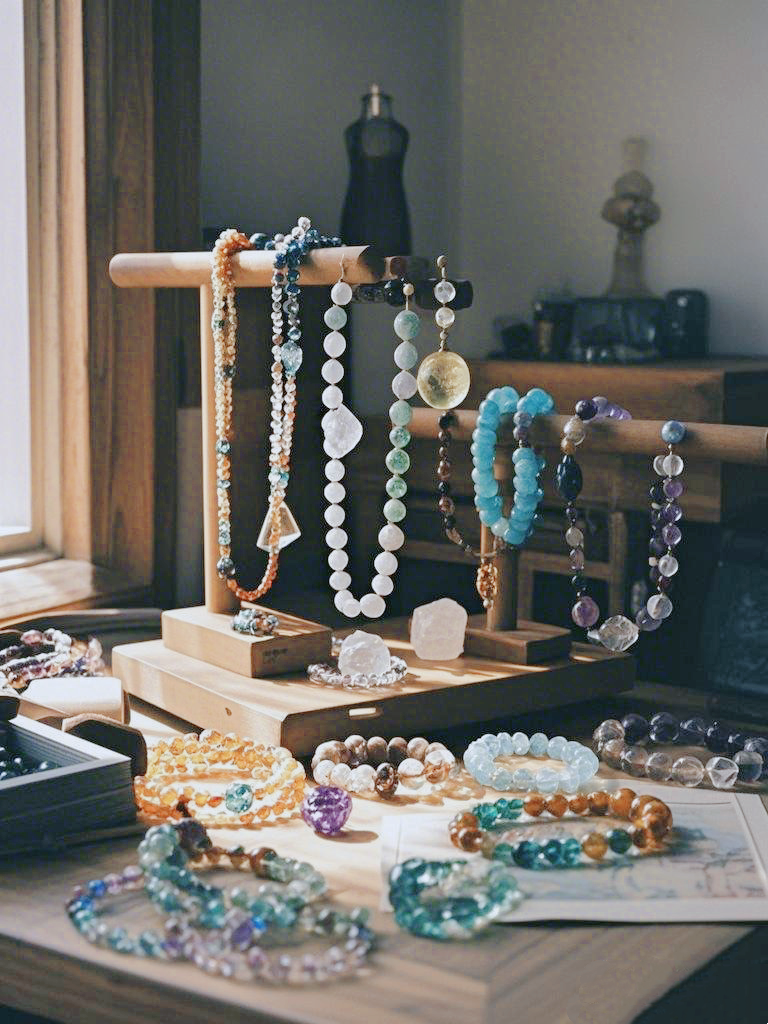 2023年,李晴媛的北大畢業(yè)作品聚焦“一帶一路”留學(xué)生群體。拍攝過程中,她發(fā)現(xiàn),國際青年對中國傳統(tǒng)文化興趣濃厚,卻缺乏了解和接觸的渠道。這一洞察成為她創(chuàng)立新中式飾品品牌“青沅”的契機(jī)。“近年來,‘佛系’文化很流行,但傳統(tǒng)工藝品往往比較古板。所以,我希望通過水晶等介質(zhì)載體,創(chuàng)作符合年輕人審美的新中式飾品,既可以日常使用,還能表達(dá)和傳承傳統(tǒng)文化。”