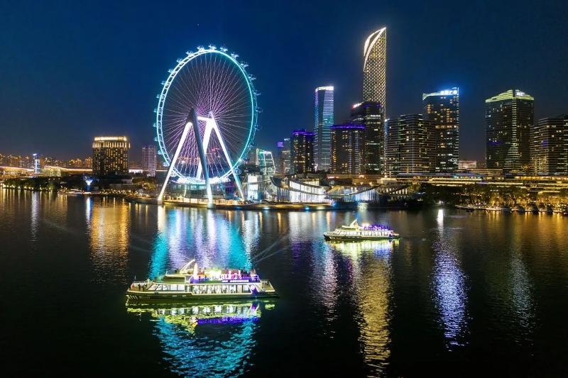 蘇州城東,金雞湖再次迎來驚喜蝶變——“蘇州之眼”摩天輪璀璨啟幕,金雞湖雙體游船浪漫啟航。高達128米的“蘇州之眼”,擘畫了金雞湖的“最美天際線”,映照出城市發(fā)展的新高度;新啟航的金雞湖雙體游船,則以全新視角,串聯(lián)起園區(qū)的現(xiàn)代繁華圖景。雙輪聯(lián)動,共同為金雞湖右岸增添了靈動時尚的色彩,成為彰顯城市魅力的新名片,撬動經(jīng)濟發(fā)展的新引擎。“‘蘇州之眼’摩天輪的煥新升級,是園區(qū)日新月異高速發(fā)展的見證。它將為市民游客帶來更具科技感、現(xiàn)代感的新體驗,為蘇州人織就新的浪漫記憶。”園區(qū)宣傳部副部長、文體旅游局局長殷衛(wèi)東表示,升級歸來的摩天輪將與金雞湖水上游,以及當代美術(shù)館、中環(huán)廣場、右岸客廳、“飛翔”雕塑等聯(lián)動,共同構(gòu)成蘇州新的城市地標,成為各方來客“到蘇州必打卡之地”,同時也是蘇州向外展示城市形象的新名片、新窗口。關(guān)鍵詞:城市新地標...
