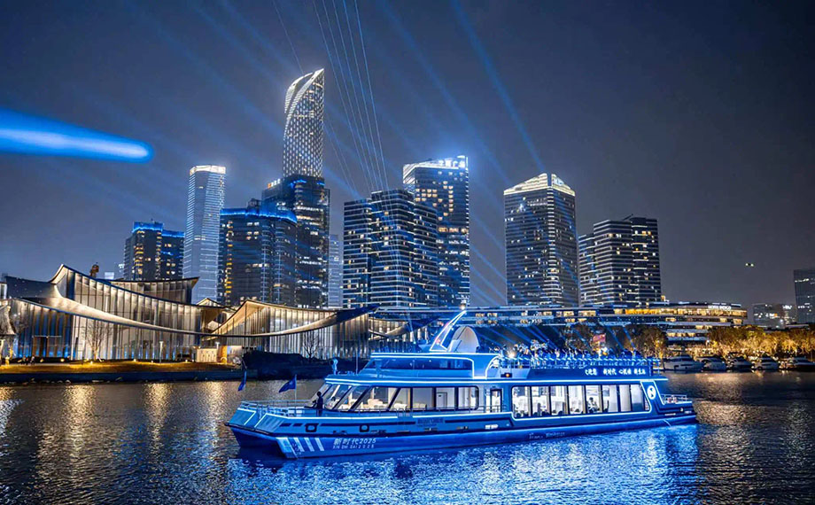 來蘇州工業(yè)園區(qū),怎么玩?這次不走“尋常路”,走水路!金雞湖畔,一場以“水”為媒的文旅狂歡正席卷蘇城,園區(qū)以獨特視角鋪展“水陸共生”藍圖,為游客帶來別具一格的水上游體驗。科技領(lǐng)航,暢享舒適游船之旅伴隨“蘇州之眼”摩天輪落成試運營的春風(fēng),新時代集團精心打造的兩艘“金雞湖號”雙體游船,與右岸新航線一同華麗登場。“金雞湖號”雙體新游船是科技與旅游融合的典范。它參考歐洲熱門游船船型設(shè)計,船長31.5米,寬8.3米,額定載客92人,集游覽觀光、休閑娛樂功能于一身。該船采用柴電動力系統(tǒng),搭載科勒發(fā)電機組、719所專利水冷電機和ABB變頻器,兼具速度與靜謐,最高時速達16公里。“相比傳統(tǒng)游船,新游船行駛得更加平穩(wěn),而且船上沒有汽油味和噪音。”游客們紛紛點贊。走進游船,一層客艙寬敞舒適,全景玻璃帶來通透視野,金雞湖美景盡收眼底;登上二層露天觀光甲...