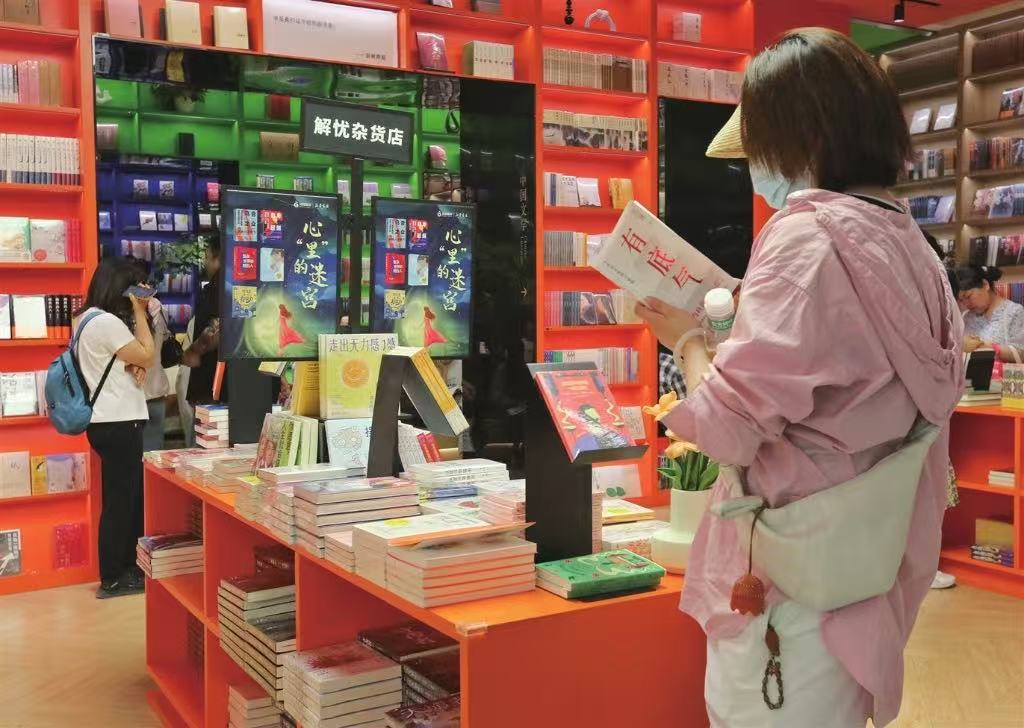 五一假期,有人喜歡游山玩水,有人喜歡音樂(lè)美食,有人喜歡與書為伴。昨天,市民在新華書店觀前書城內(nèi)認(rèn)真閱讀。 闕明芬攝(視覺(jué)蘇州供圖)