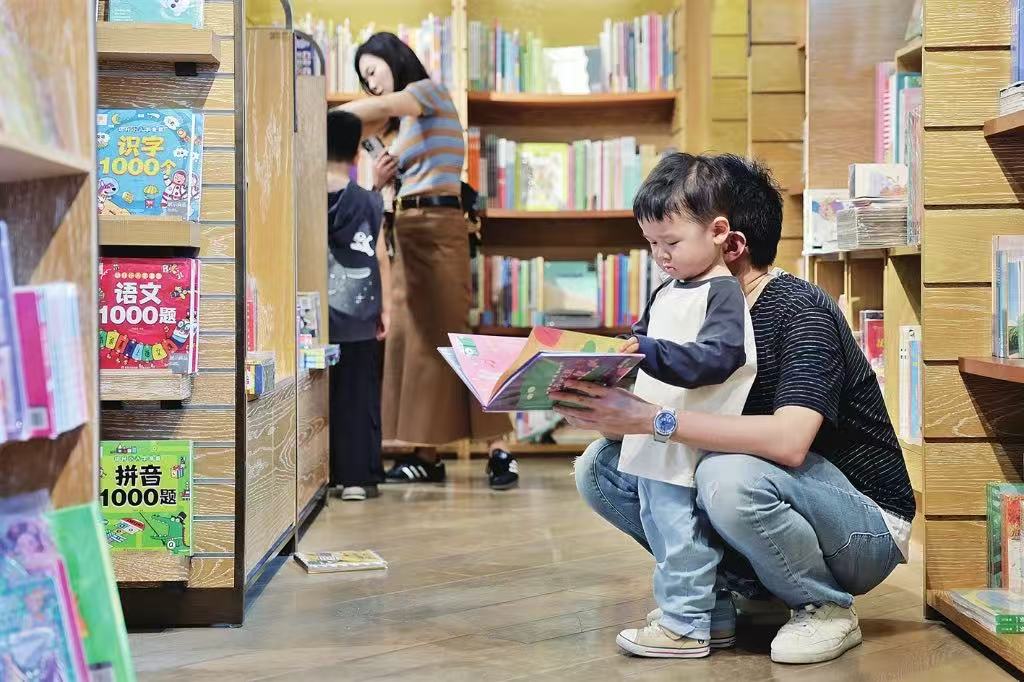 昨天下午,園區(qū)誠(chéng)品書店內(nèi)人氣滿滿,有家長(zhǎng)帶著孩子一起徜徉書海。 記者 倪黎祥攝