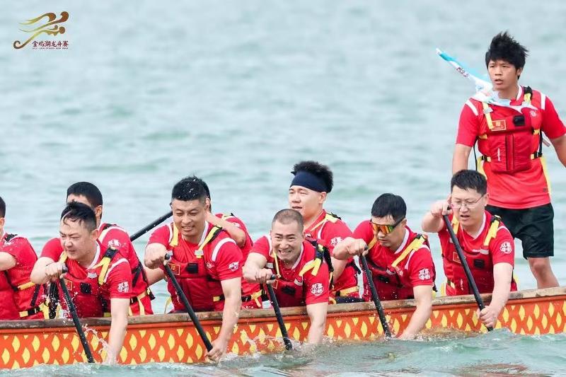 咚!咚!咚!激昂鼓點如心跳,一艘艘龍舟瞬間化作離弦飛箭,選手們緊握船槳,以鼓點為沖鋒號,在碧波蕩漾的金雞湖面劃出一道道澎湃的弧線,整個金雞湖都跟著沸騰。5月31日上午,2025第十五屆金雞湖端午龍舟賽熱血啟航!