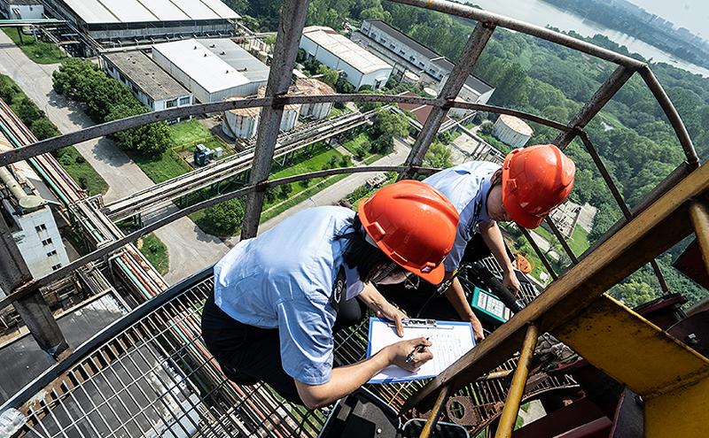 提及環(huán)境監(jiān)測(cè),孫亮將其形容為“醫(yī)生看病”,對(duì)于企業(yè)的排污情況,工作人員需要爬到排氣筒旁,先“抽血”、再“驗(yàn)血”,以此進(jìn)行判定。而回憶起第一次進(jìn)行采樣工作時(shí),孫亮的反應(yīng)遠(yuǎn)不如現(xiàn)在從容。“我當(dāng)時(shí)面對(duì)的是60米高的煙囪。在恐高與高溫的雙重挑戰(zhàn)下,我背著采樣槍攀爬鏤空的登塔樓梯,硬扛了2個(gè)小時(shí)才完成監(jiān)測(cè)任務(wù)。”