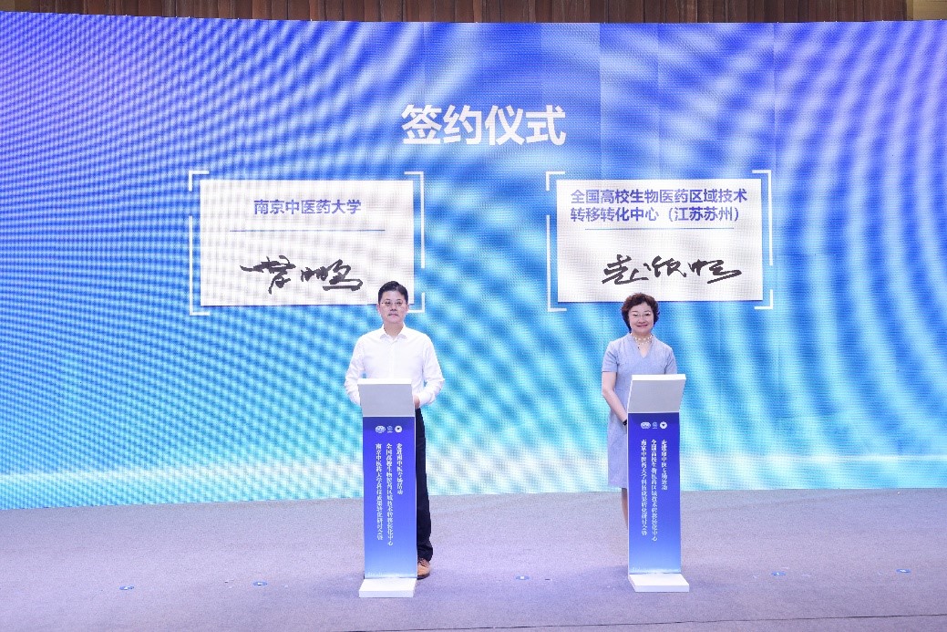 現場,蘇州生物醫藥分中心與南京中醫藥大學正式簽約。雙方將充分整合各自資源優勢,加強合作力度,為科技成果轉移轉化賦能增效,共同打造中醫藥成果轉化示范標桿。