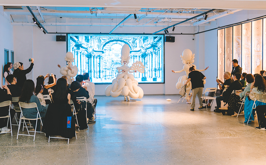活動現場,藝術家薩沙帶來開幕表演《萬物歌唱》,通過裝置的膨脹、收縮與身體的起伏、舒展,模擬出“萬物生長、發聲”的意象。俄方代表PARI藝術聯盟聯合創始人葉蓮娜·科列索娃、藝術史學者達麗婭·切爾帕琴科、獨立策展人米阿、有南文化創始人李慷等從文化背景、創作理念等多角度闡釋了“材料”在當代藝術中的角色演變。