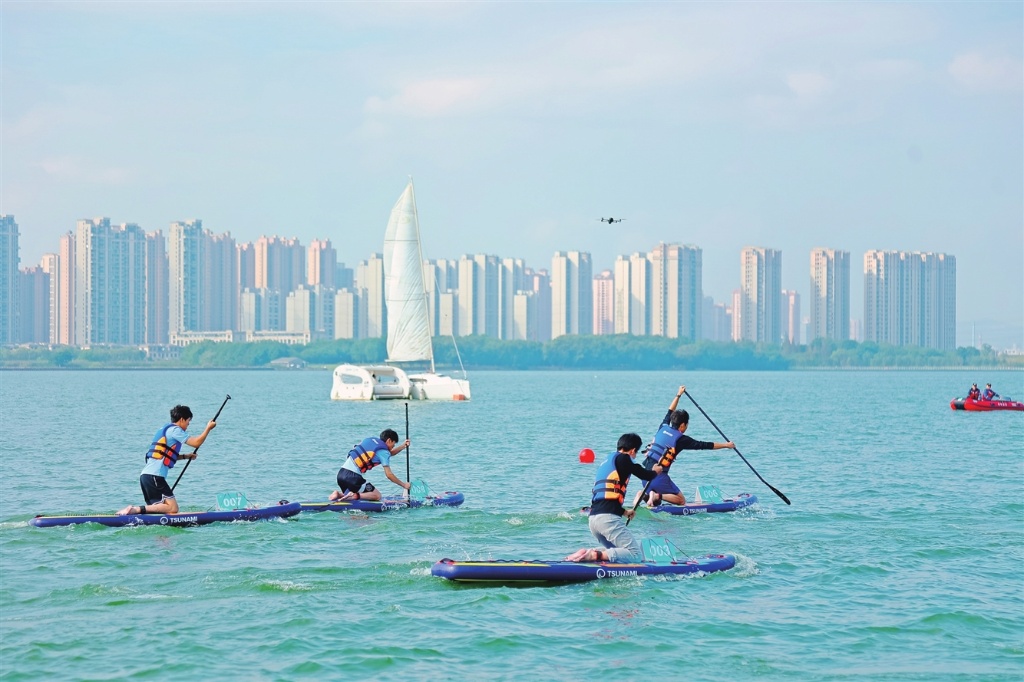 賽事作為園區(qū)金秋三湖嘉年華系列活動之一,以“商旅文體展深度融合”的核心理念,將賽場與消費場景無縫鏈接,形成了“水上有競逐、岸上有消費、線上線下有互動”的立體化體驗。
