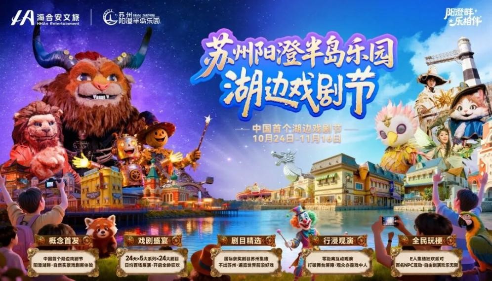 當(dāng)秋日風(fēng)光與戲劇藝術(shù)浪漫邂逅,一場(chǎng)顛覆傳統(tǒng)的藝術(shù)盛宴正蓄勢(shì)待發(fā)。作為園區(qū)“金秋·三湖嘉年華”的重要活動(dòng)之一,10月24日至11月16日,蘇州陽(yáng)澄半島樂(lè)園將創(chuàng)新打造中國(guó)首個(gè)湖邊戲劇節(jié),以陽(yáng)澄湖的天然生態(tài)為舞臺(tái),實(shí)現(xiàn)“戲在湖畔,人在劇中”的沉浸式體驗(yàn),為市民游客呈現(xiàn)一場(chǎng)為期24天的全民藝術(shù)狂歡。