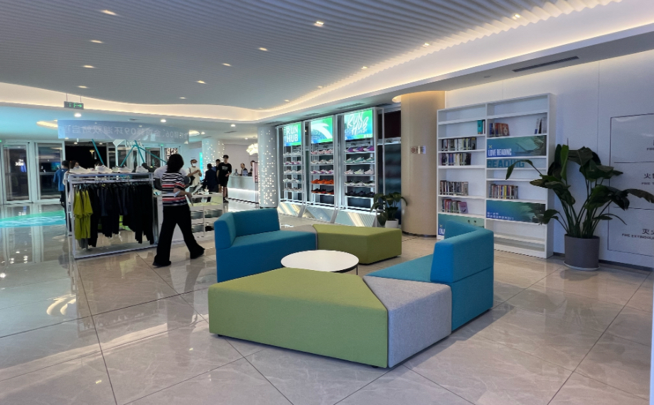 走進跑者驛站,明朗的色彩搭配洋溢著城市與運動的活力。衣物寄存、淋浴服務、裝備租賃、能量補給和社群活動五大功能區域有序規劃,不僅解決跑者“負重跑步”“運動后煥新”的痛點,還通過跑鞋等裝備租賃,提升“說跑就跑”的自由體驗。