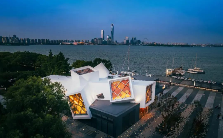 走進金雞驛01,原木色建筑與湖景相映成趣,在這里,市民游客可以手捧一杯溫熱的咖啡,與東方之門合影,將時光定格為有氛圍感的記憶。金雞驛02以“蘇州色卡”打造現代感空間,黑盒子基座搭配白色筒體,橙色點綴彰顯活力;驛站聯動風之園碼頭提供帆船、槳板、皮劃艇等水上體驗,引領市民游客解鎖“乘風破浪”的快樂。金雞驛06獨特的帆船造型設計是沿湖的視覺焦點,這里還承辦帆船專業賽事、開放帆船體驗項目,讓市民游客在暢游湖面之余盡覽東方之門與桃花島美景,驛站二層的全景露臺更是體驗金雞湖浪漫落日的絕佳位置。金雞驛11則以竹飾面漸變曲面呼應周邊雕塑,將自然野趣與高端體驗巧妙融合,打造戶外露營主題驛站,提供裝備租賃、探險咨詢與24小時補給,滿足從新手到資深玩家的多樣需求……