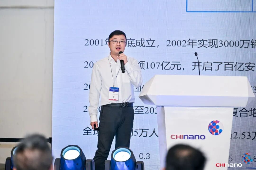蘇州鈞祥新材料有限公司技術總監徐黎明,帶來了主題《高通量負載的層狀氧化硅納米材料》的分享。他介紹道:其公司研發的高通量負載層狀氧化硅納米材料,突破了傳統金屬納米粒子負載技術瓶頸,具備超高比表面積和有序孔道結構,實現了金屬納米顆粒的高負載與均勻分散,有效解決了高溫燒結與團聚等行業痛點。該材料在無機抗菌、高效催化、電磁屏蔽、鋰電隔膜等領域展現出廣泛應用潛力,已通過多家單位試用并實現銷售,具有成本低、性能優、可定制等優勢,為推動納米材料產業化發展提供了關鍵支撐。