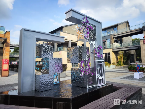 今年,愛墻創作者、法國藝術家貝隆與中國書法家費之雄、蘇州大學藝術學院教授張大魯聯袂創作裝置藝術作品《凝望》,將文字圖形與波紋不銹鋼相結合,呼應塞納河與金雞湖的水韻,呈現了一場跨越東西方文明的詩意凝望。