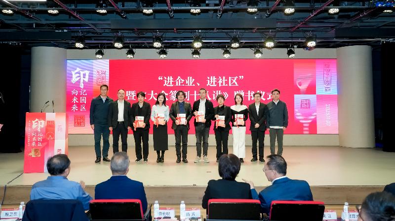 開幕活動上蘇州市委宣傳部、蘇州工業(yè)園區(qū)管委會、蘇州大學、中國職工文化體育協(xié)會等單位領導,共同在《一張藍圖繪到底》園區(qū)全景圖卷軸上鈐印,宣布展覽啟幕。現(xiàn)場同步啟動了“印六進”系列推廣活動,包括“進校園”暨沙畫共創(chuàng)、“進企業(yè)、進社區(qū)”暨《大眾篆刻十八講》贈書,以及“進景區(qū)、進商業(yè)、進國際”暨“‘走讀三湖·印證風華’跟著篆刻去旅行——金秋·三湖嘉年華”等系列活動。