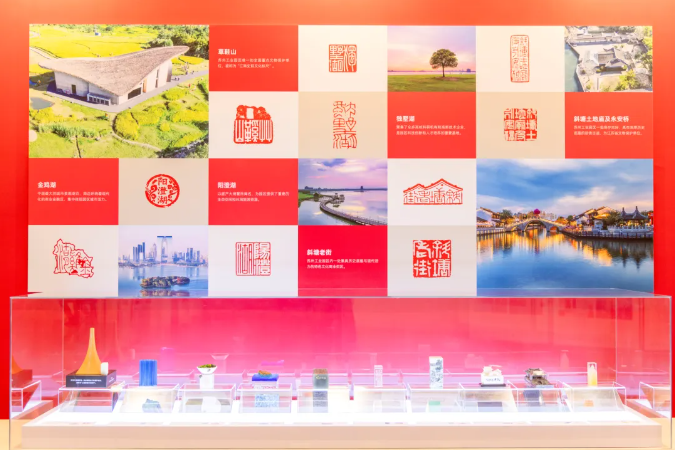 一枚“飛翔”印,源于園區(qū)成立30周年標(biāo)志雕塑。巧妙融合蘇州房瓦元素與飛揚(yáng)線條,象征這片土地“中新合作、面向未來”的期許。一枚“草鞋山”印,刻畫的正是有著“江南史前文化標(biāo)尺”之稱的草鞋山考古遺址公園。這方穿越六千年的時光印章,刻錄著蘇州最早的稻作文明與先民智慧,是園區(qū)歷史的無聲見證。