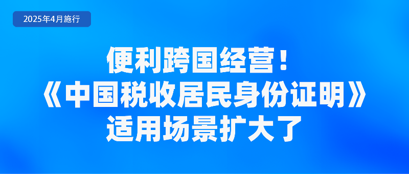 《關于〈中國稅收居民身份證明〉有關事項的公告》(國家稅務總局公告2025年第4號),為中國居民開展跨境經營提供保障和便利,自2025年4月1日起生效執行。《中國稅收居民身份證明》是納稅人在境外使用的證明其中國稅收居民身份的重要文件。《公告》優化的事項包括:拓展《稅收居民證明》適用場景。申請人應當根據實際情況選擇享受協定待遇或者非享受協定待遇的申請目的,后者覆蓋了近年來納稅人在境外遇到的多個場景。實現全流程網上辦。調整《稅收居民證明》內容。壓縮辦理時限。如果主管稅務機關能夠自行判定稅收居民身份,辦理時限由現行的10個工作日縮短至7個工作日。