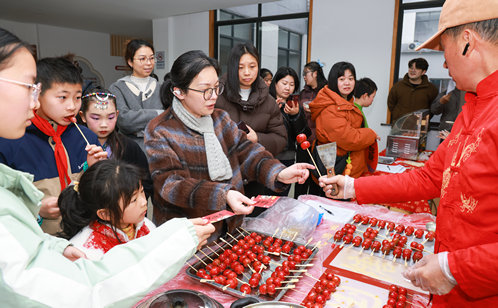 循著香氣走到美食區(qū),海棠糕剛剛出爐,糖漿的焦甜裹著果仁的酥脆;赤豆小圓子在鍋中翻滾,軟糯香甜一碗下肚,暖意從舌尖蔓延到心底。老人們嘗著熟悉的老味道,孩子們捧著美食笑逐顏開,熱鬧喧囂里升騰的,是團(tuán)圓的踏實(shí)與溫?zé)帷?/span>