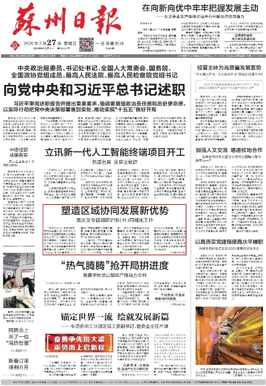 《蘇州日?qǐng)?bào)》2026年02月27日A01版
