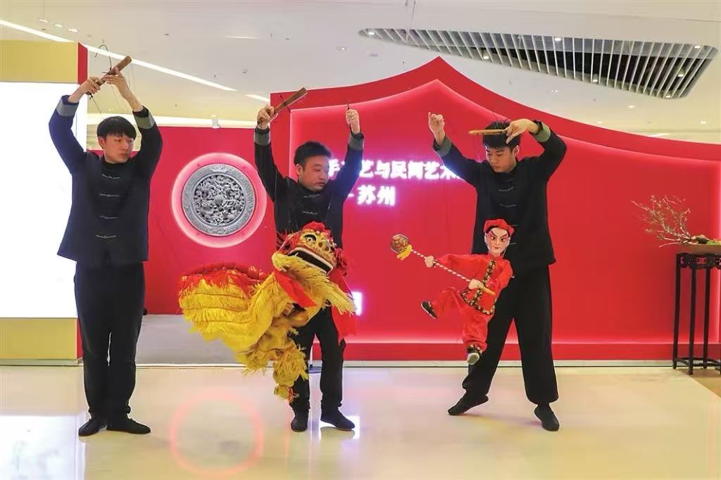 昨日,蘇州馬年新春非遺系列活動之七都提線木偶演出亮相蘇州中心,懸絲飛舞間,傳統技藝引得來往顧客紛紛駐足。