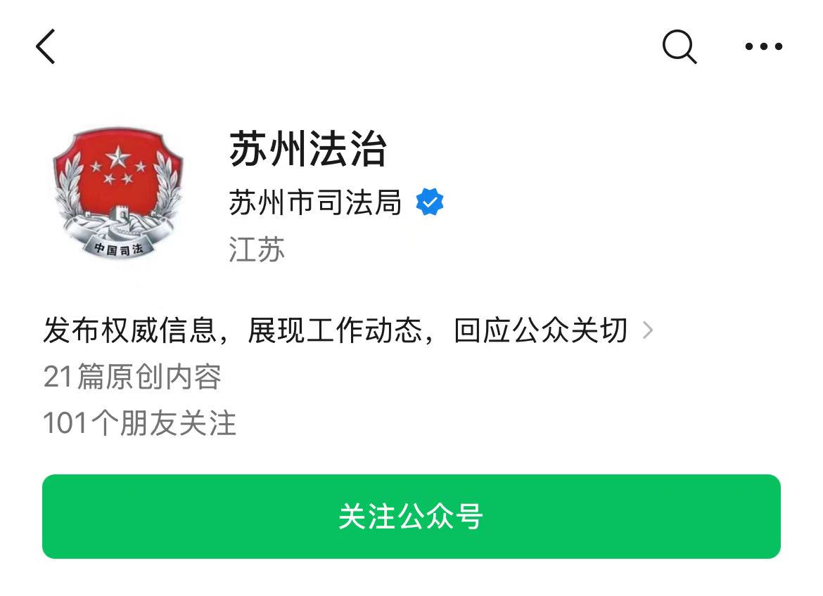 第一步:微信搜索、關注“蘇州法治”公眾號