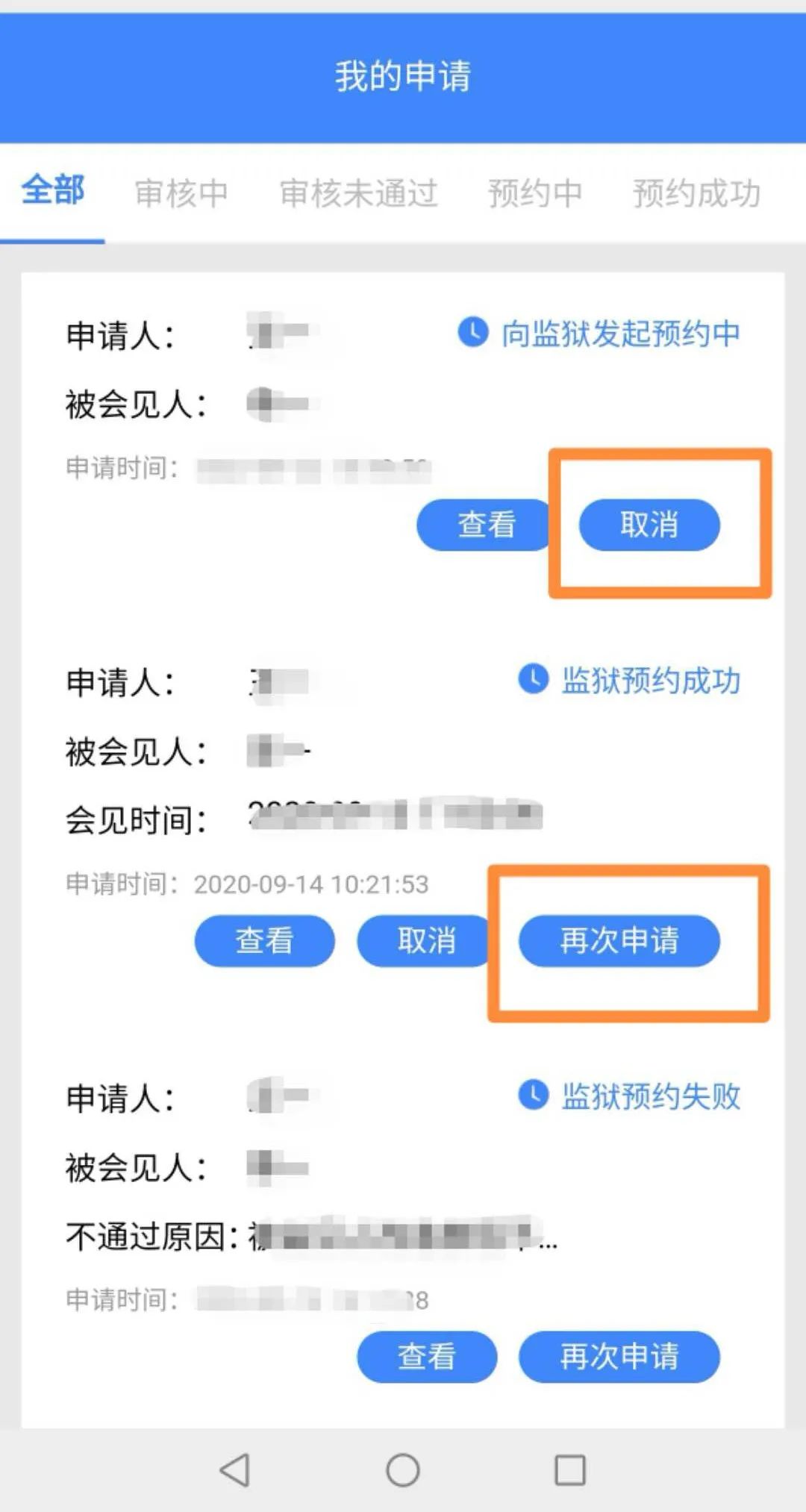 2.已安排視頻會見的,當月就不能同時再到監獄實地會見,特殊情況除外。已到監獄實地會見過的,當月不能在手機端發起預約申請。
