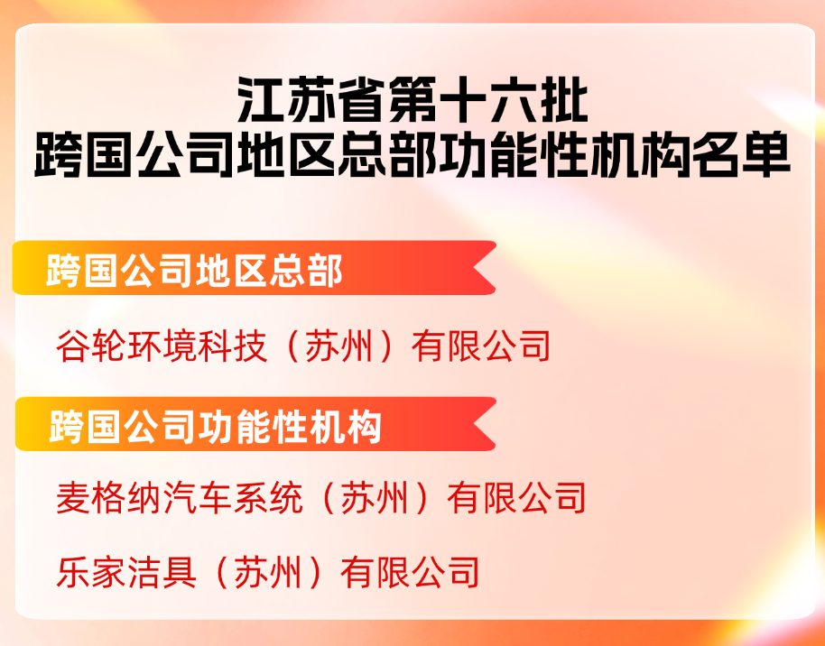 近期,2025年江蘇省第十六批跨國公司地區總部和功能性機構認定名單公布,園區3家企業入選,其中地區總部1家、功能性機構2家,占全省近20%、全市近30%。