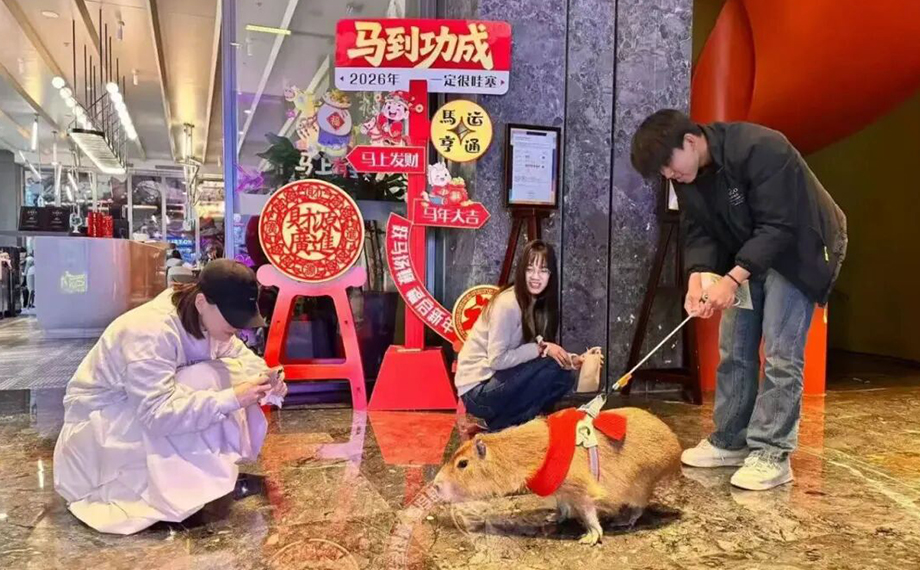 歐式建筑間張燈結(jié)彩,新春裝置前人流如織。春節(jié)期間,比斯特蘇州購物村攜手桃花塢木版年畫傳承人喬麥及其工作室,共同打造八款限定財(cái)神形象,分布于購物村內(nèi)各地,并同時(shí)推出“尋財(cái)神,納福禮”非遺打卡活動(dòng),集齊八款財(cái)神即可兌換好禮,吸引了眾多游客積極參與。