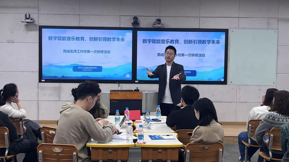 在教育改革的浪潮中,數字化轉型正逐漸改變著傳統的教學模式。蘇州工業園區周成初中音樂名師工作坊于3月27日在婁葑學校未來教室舉辦了第一次研修活動,以“數字化賦能新型教與學模式的研究”為主題,開啟了一場音樂教育與數字技術深度融合的探索之旅。
